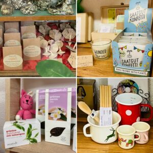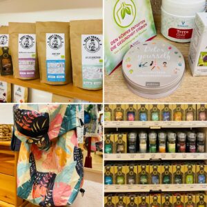 Bernhard hat die Druckerfarbe sprichwörtlich im Blut und präsentiert Handgefertigtes, das auf den alten Maschinen seines Vaters entsteht. Auch Postkarten und Bücher aus dem Plöchl Verlag gibt es zu erstehen. Außerdem findet man Kristalle, Schnitzkunst, Tees, Nahrungsergänzung und vieles mehr.